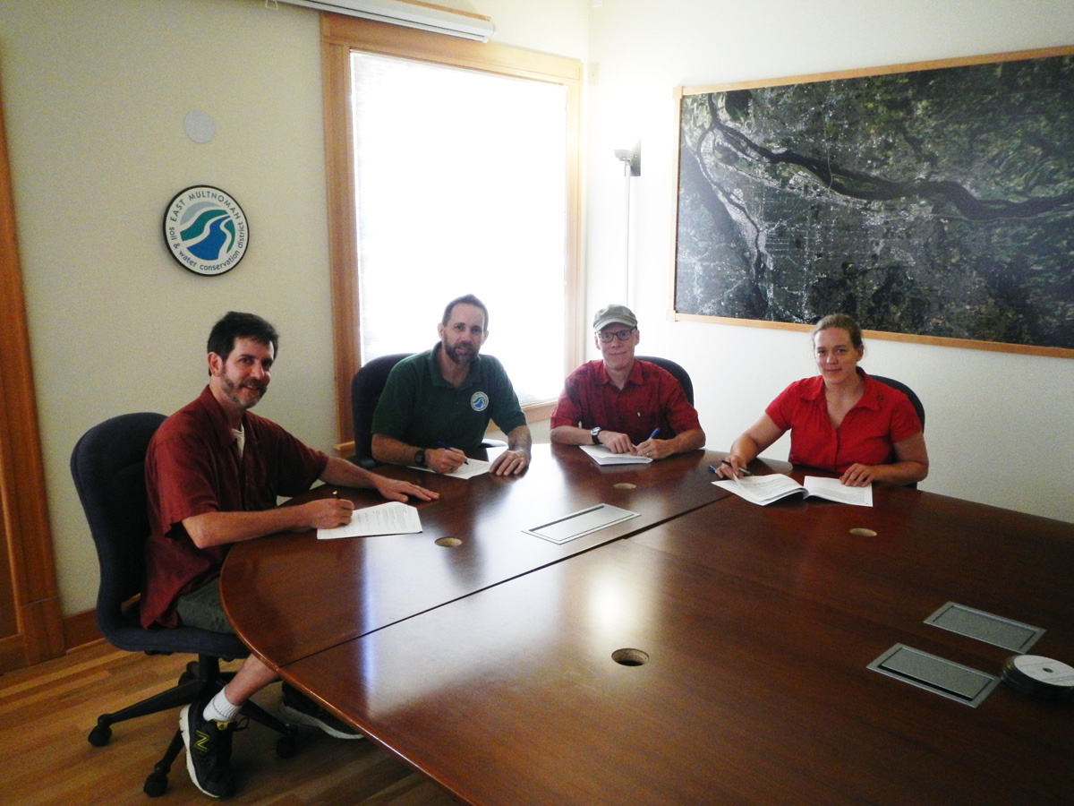 2016 Strategic Partnership Agreement signing ← Previous Next → From left to right: Steve Wise, SRBWC Executive Director, Jay Udelhoven, EMSWCD Executive Director, Daniel Newberry, JCWC Executive Director, Corrina Chase, CSWC Executive Director.