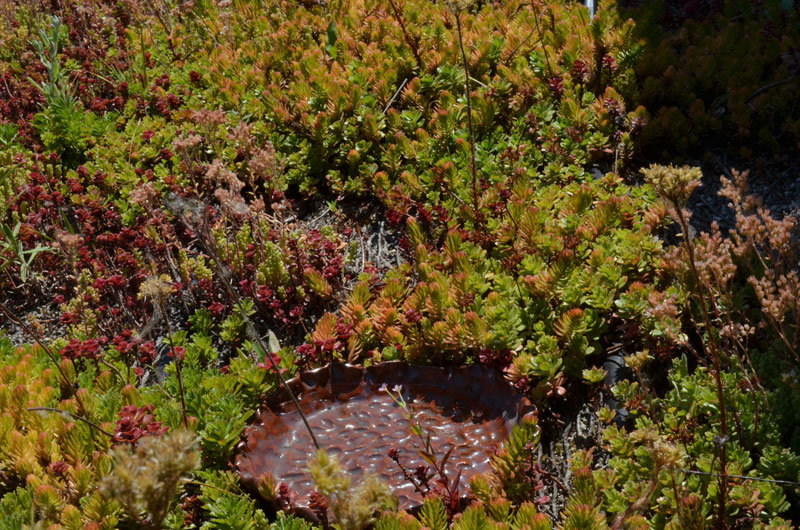 Ecoroof more shots ← Previous Next → Another shot of the same side of the roof, and a water feature we normally keep filled for birds and insects