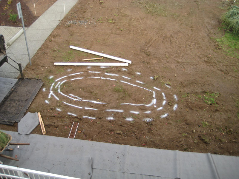 EMSWCD_const2 ← Previous Next → All the grass is removed from the field, and a rain garden’s contours are marked.