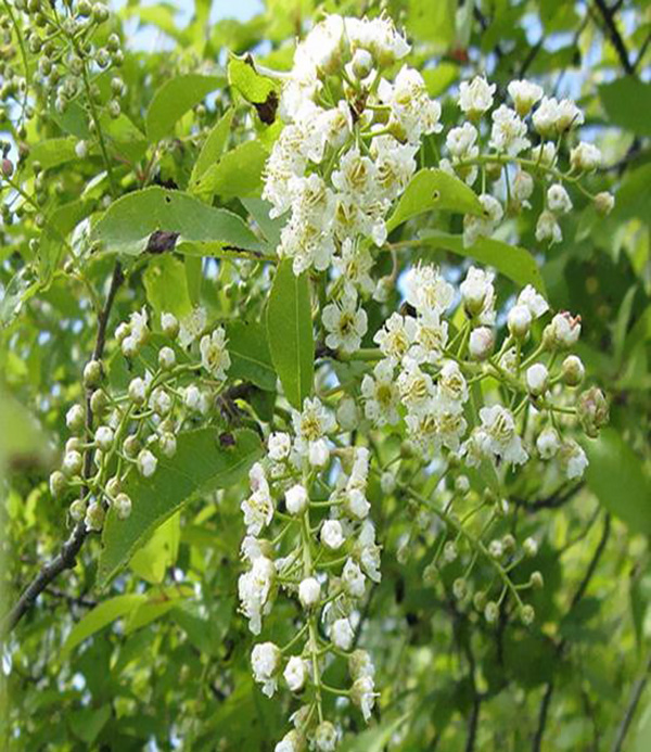 This small, elegant tree can grow anywhere from 12-40 feet tall. It has dangling clusters of small, fragrant flowers in spring to mid summer. The leaves are oval, serrated, 2-4 inches long and pointed at the tip. The fruit is a ¼-½ inch cherry that starts red and becomes purple or black when ripe. Fall foliage is yellow.