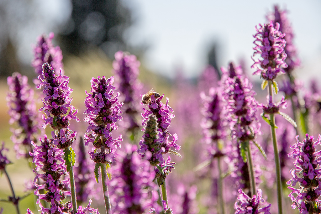 Bee on flowers at Headwaters Farm ← Previous Next → Pollinator forage at Headwaters Farm. Photo credit Chelsea Rutherford.
