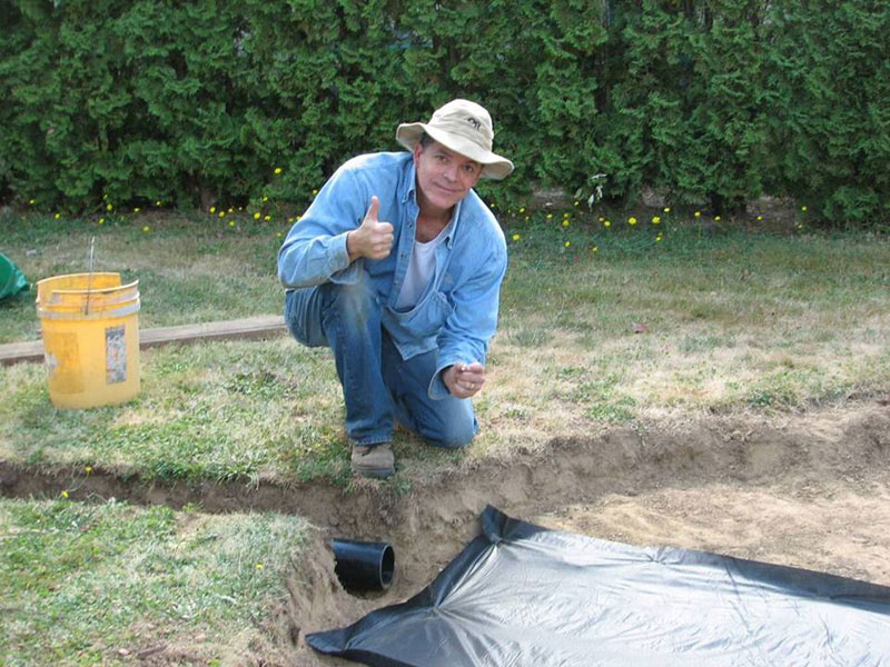 Building Rain Garden 10: Installing pipe checking for positive slope with marble ← Previous Next → You can use a marble to test if the pipe slopes toward the rain garden.