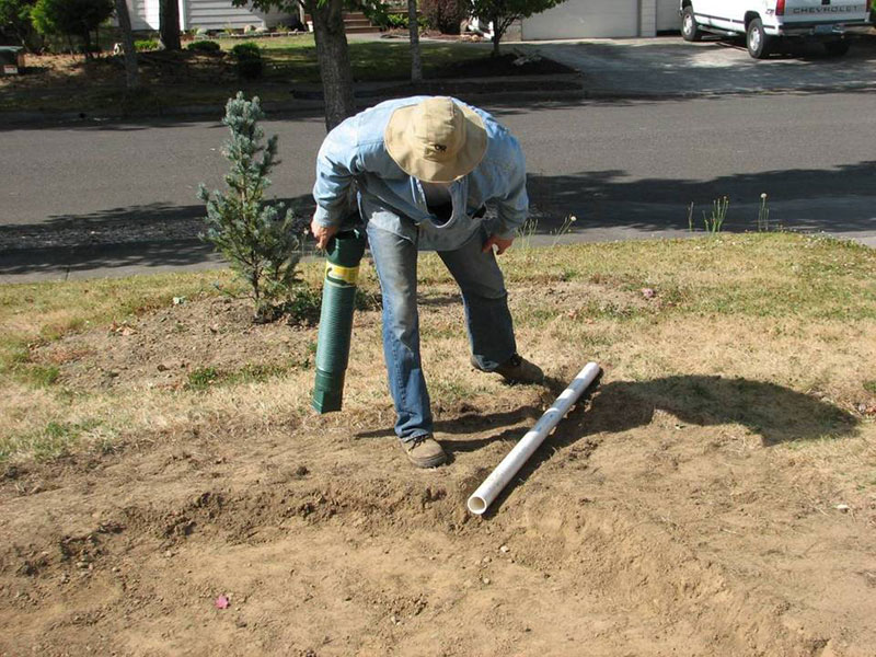 Building Rain Garden 11: Installing pipe for overflow ← Previous Next → Installing the overflow pipe.