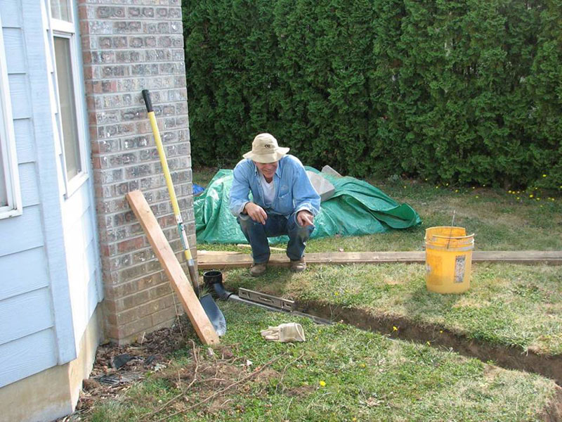 Building Rain Garden 9: Installing pipe ← Previous Next → Install the pipe that carries water from the downspout to the rain garden.