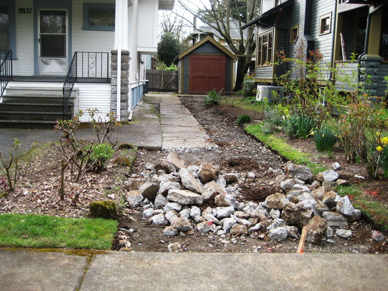 Depaved area ← Previous Next → You can decrease the runoff from around your home by breaking up unused paved areas (called “depaving”) and planting there instead!
