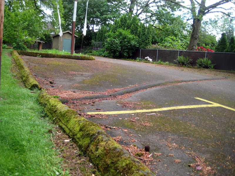 In this parking lot, small speed bumps also help manage stormwater runoff! The speed bumps direct the runoff into the adjacent lawn, rather than letting it run into the street.