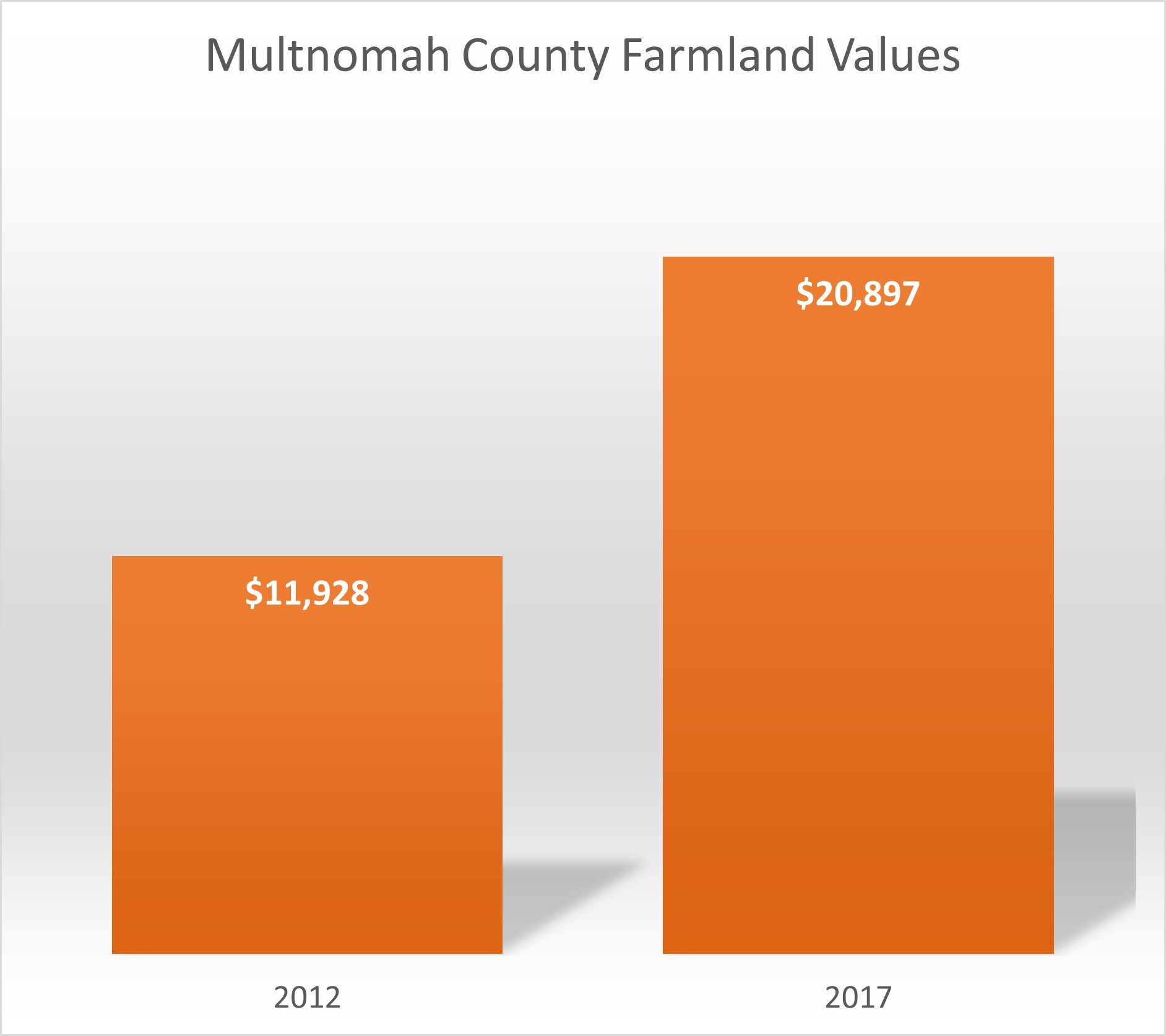 Multnomah County Farmland Values chart Next → Multnomah County farmland values per acre. Source: USDA Census of Agriculture, 2017