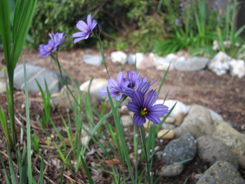 Blue-eyed grass ← Previous Next → Blue-eyed grass (Sisyrinchium idahoense), a native groundcover – low-growing with small bluish-purple to blue-violet flowers.