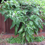 Pokeweed (Phytolacca americana) is a poisonous plant native to the southeastern U.S. with a long and interesting history. In the campaign of James K. Polk, the 11th US president, the leaves were reportedly worn by his supporters, and was therefore called Polkweed. The original name is derived from the Algonquin word ‘pakon’ or ‘puccoon,’ which meant roughly a dye plant used for staining. Though all parts of a pokeweed plant are poisonous when raw, freshly cut young leaves may be twice boiled and eaten like spinach, and the plant is sometimes canned and sold commercially. In 1969 the song “Poke Salad Annie” was on the airwaves. Despite all these claims to fame, we are quite certain that pokeweed should remain in its native range.