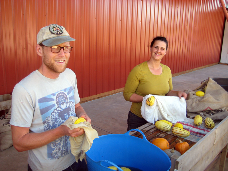 headwaters-farmers ← Previous Ryan and Leah of Rockwood Urban Farm, two farmers in the Farm Incubator program, are washing produce outside the Headwaters barn