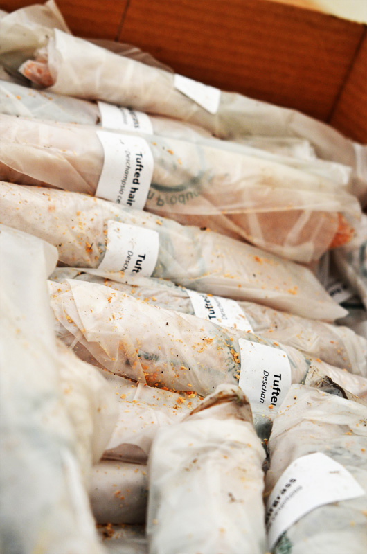 Rhizome baggies ← Previous Next → Bags of tufted hairgrass rhizomes, packed in bags with moist sawdust to protect them!